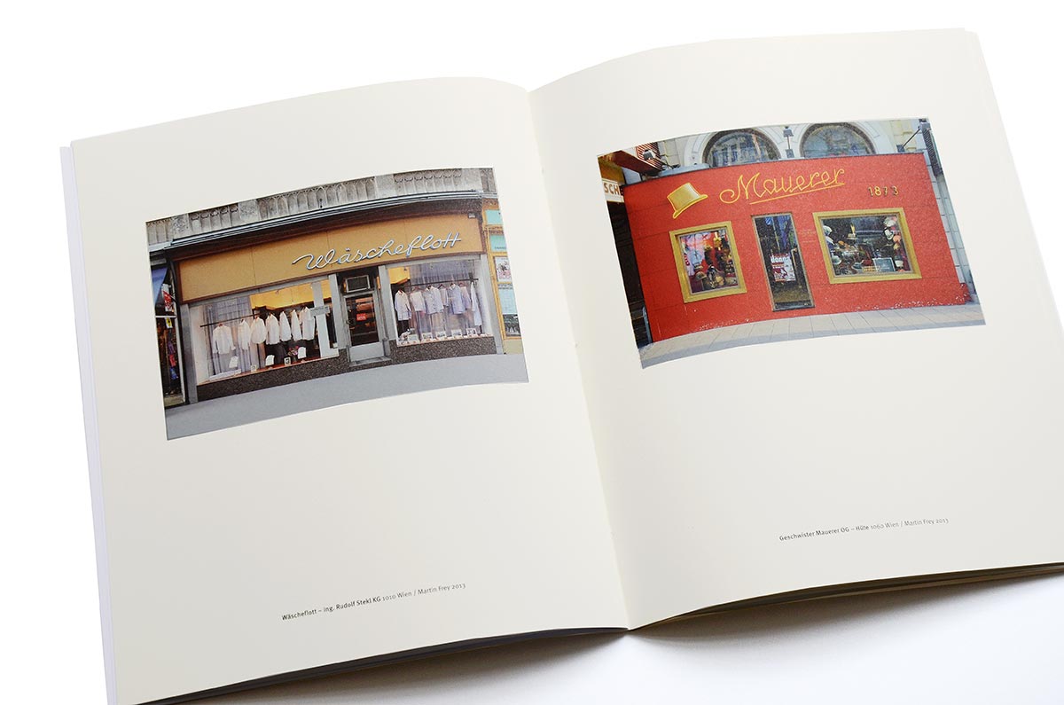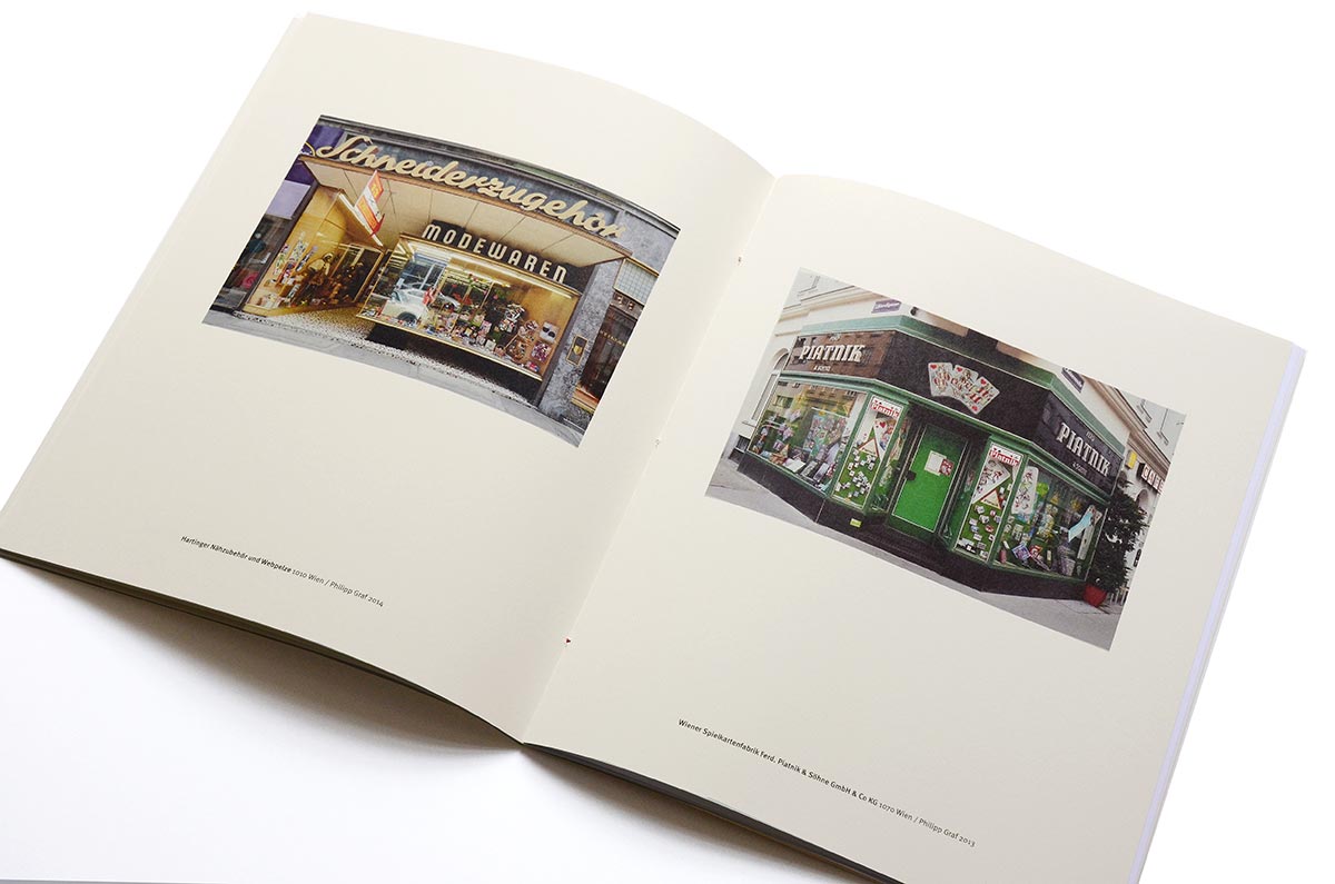 The shopfronts in volume 2 represent businesses from the following fields and professions: electrician, patisserie, tailor, optician, hat shop, furrier, hairdresser, tailoring supply shop, playing-card factory, record shop, butcher, shirt maker, photo supply shop, manicurist and pedicurist, coffee roaster, shoemaker, electronics shop, fashion shop and master gunsmith. The following businesses have since closed: electrician Franz Atzler (Kirchengasse), tailor Peter Schett, gun and rifle maker Franz Uitz (Wiedner Gürtel), shoemaker Richard Pasch and furrier Ioannis Drimzakas …</p>