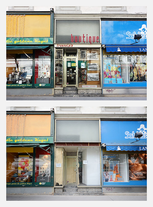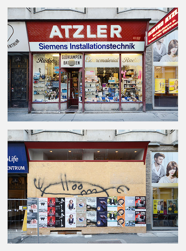 Die Aufnahmen der alten Geschäfte wurden den neuen Gegebenheiten gegenübergestellt, zwischen den vergleichenden Aufnahmen liegt ein Zeitraum von zwei bis sechs Jahren. Das Fotobuch erscheint in einer limitierten und signierten Auflage von 150 Stück:
